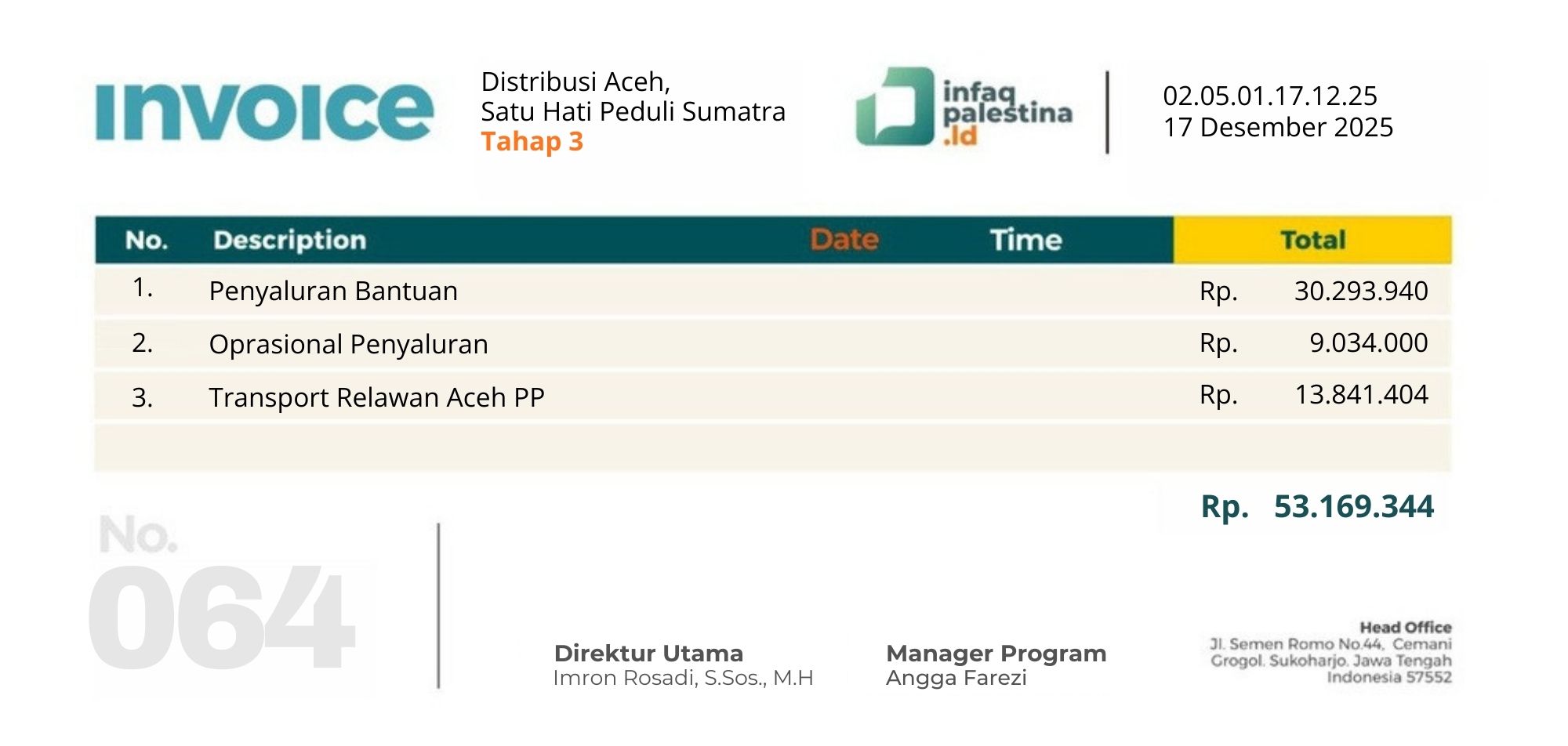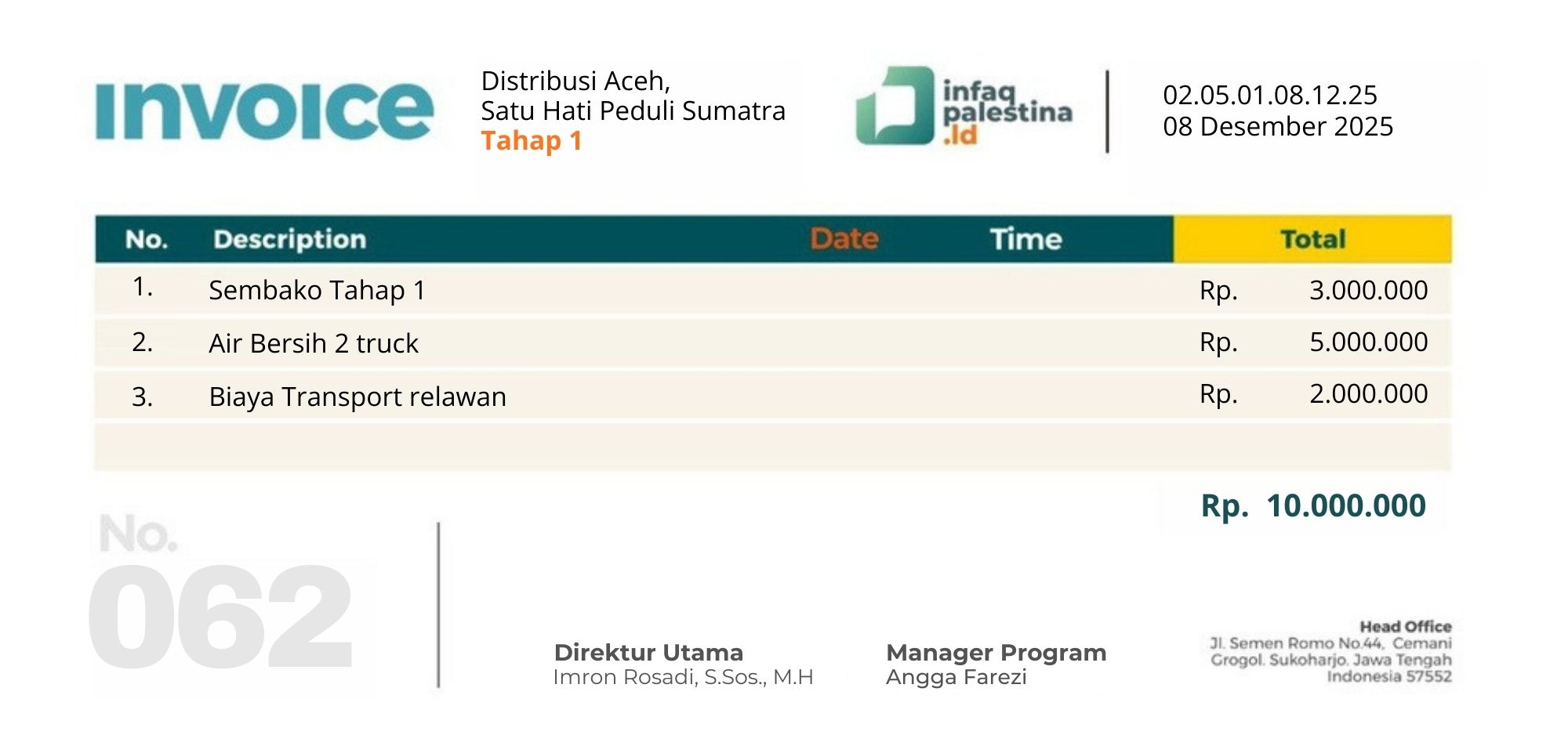 Pencairan Dana Peduli Sumatra tahap 1