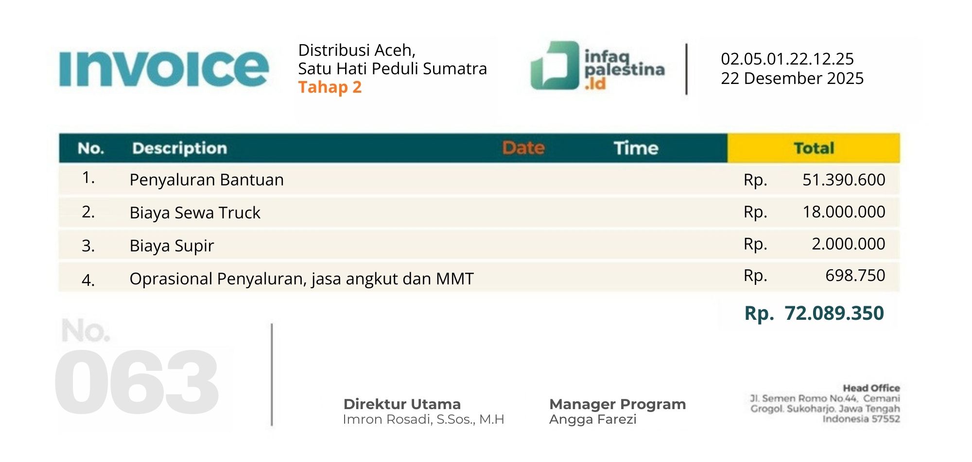 Pencairan Dana Donasi Peduli Sumatra