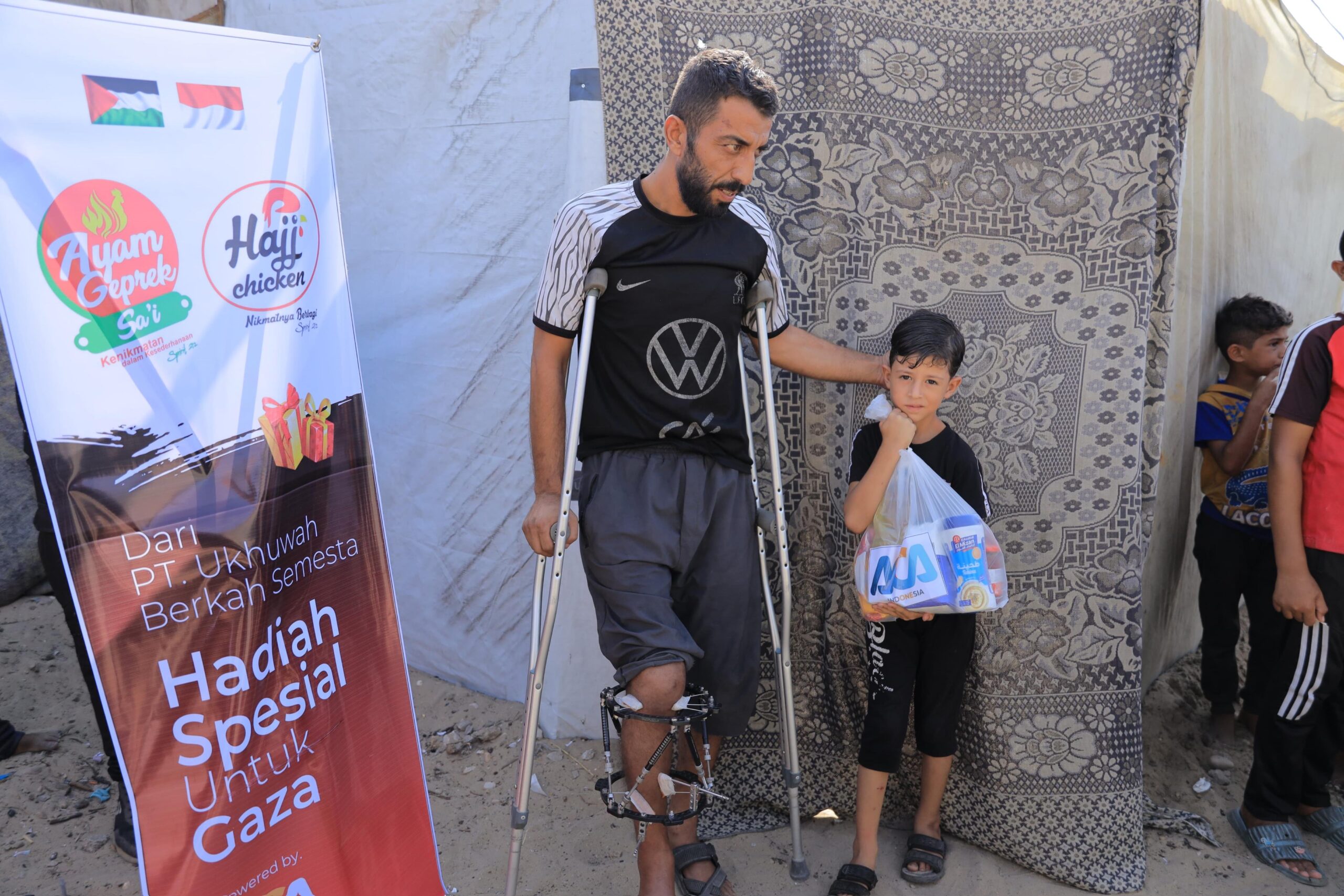 Gaza — Pada September, bantuan kemanusiaan berupa sembako makanan disalurkan kepada para pengungsi di wilayah Jalur Gaza, tepatnya di kawasan Gaza Selatan, Khan Yunis. Distribusi bantuan dilakukan langsung di tenda-tenda pengungsi yang menjadi tempat tinggal sementara warga terdampak krisis kemanusiaan.